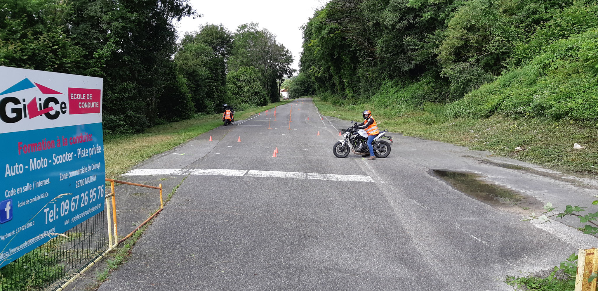 Pour toutes les formations de la catégorie AM/A1/A2/A/L5e nous utilisons une piste privée située sur la commune de LONGEVELLE Sur Doubs (25260).